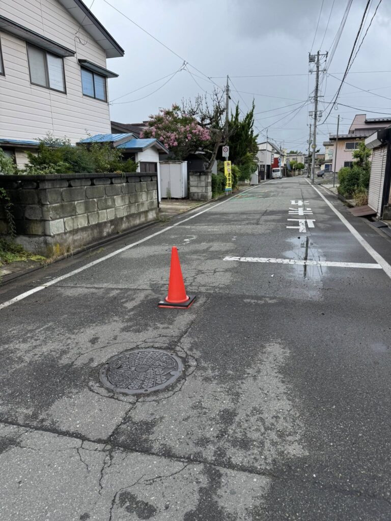 先日は竿燈の屋台など片付け途中、日新小近くの道路が深さ50cm弱も陥没しているのを発見。道路維持課から所管の上下水道へ連絡し、その日のうちに応急処置していただきました。