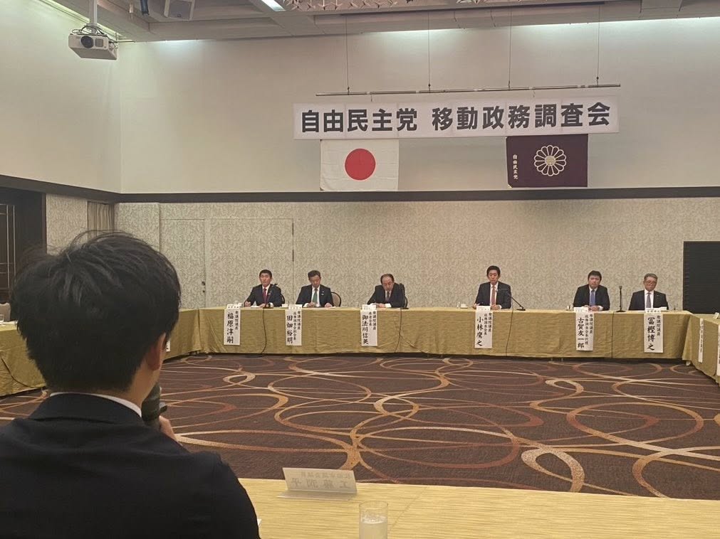 本日、秋田市にて開催された「第1回自民党移動政務調査会」において、小林鷹之政調会長、古賀友一郎政調会長代理、田畑裕明政調会副会長が来県し、意見交換会が開催されました。