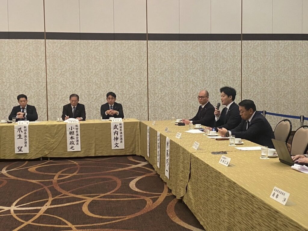 主に4つの議題をテーマに意見交換会が進められましたが、佐々木雄太県議より発言の機会をいただき、政府が昨日閣議決定した「クマ対策パッケージ」と重複しない、秋田市独自の喫緊の課題と要望をお伝えしました。